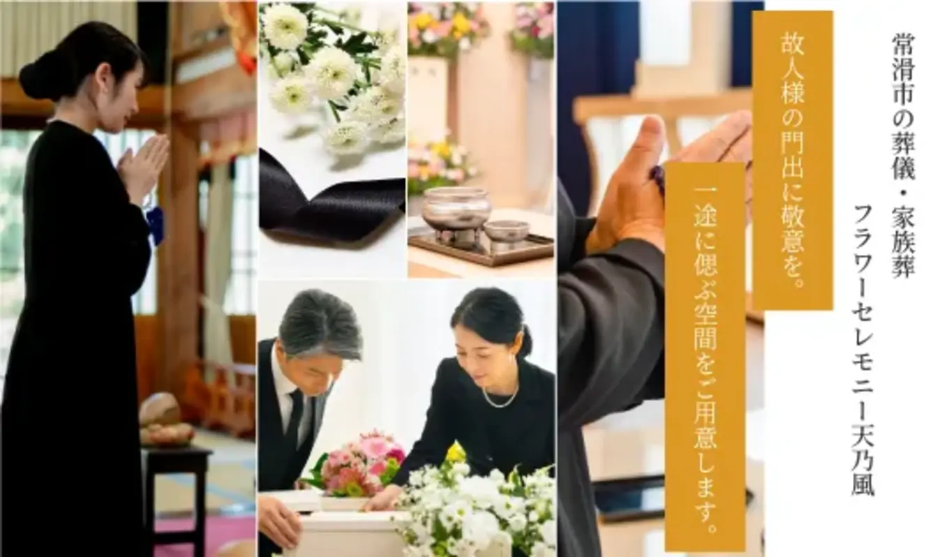 フラワーセレモニー天乃風は常滑市の葬儀・家族葬の実績が豊富な葬儀社です。 大切な方を亡くされて、とてつもない悲しみに暮れている皆様の負担が少しでも軽くなるよう努めます。故人様のご意向に沿ったプランはもちろん、お棺や祭壇を彩り豊かな生花で満たした華やかなプランも。当社に在籍している厚生労働省認定葬祭ディレクターが、さまざまなご提案をします。