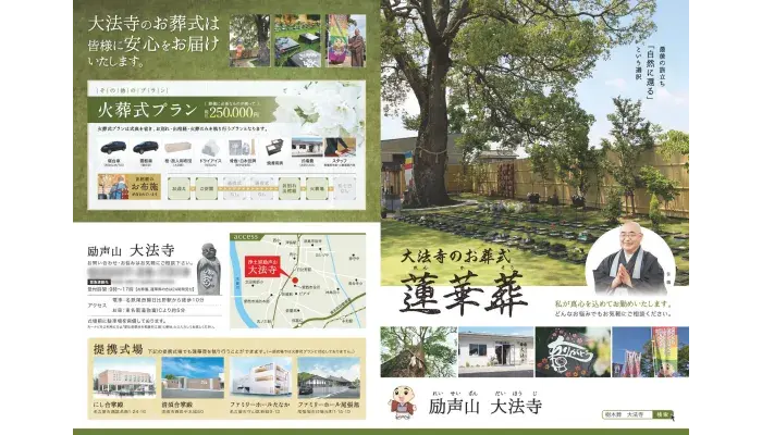 浄土宗励声山 大法寺は一日葬や家族葬はもちろんのこと、火葬式や一般葬など様々な葬儀形式に対応しています。