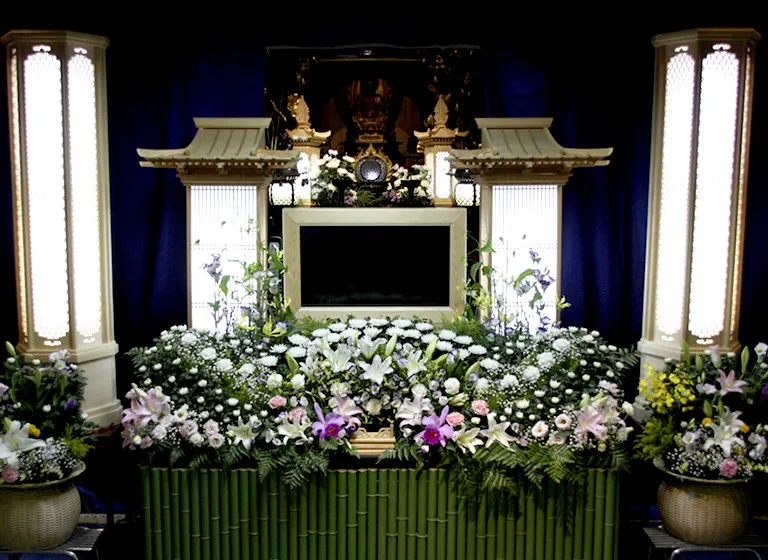 平安会館江南斎場では、「祭壇セット」を20%OFFでご提供いたします。明確な料金設定で、事前に安心してプランをご利用いただけます。