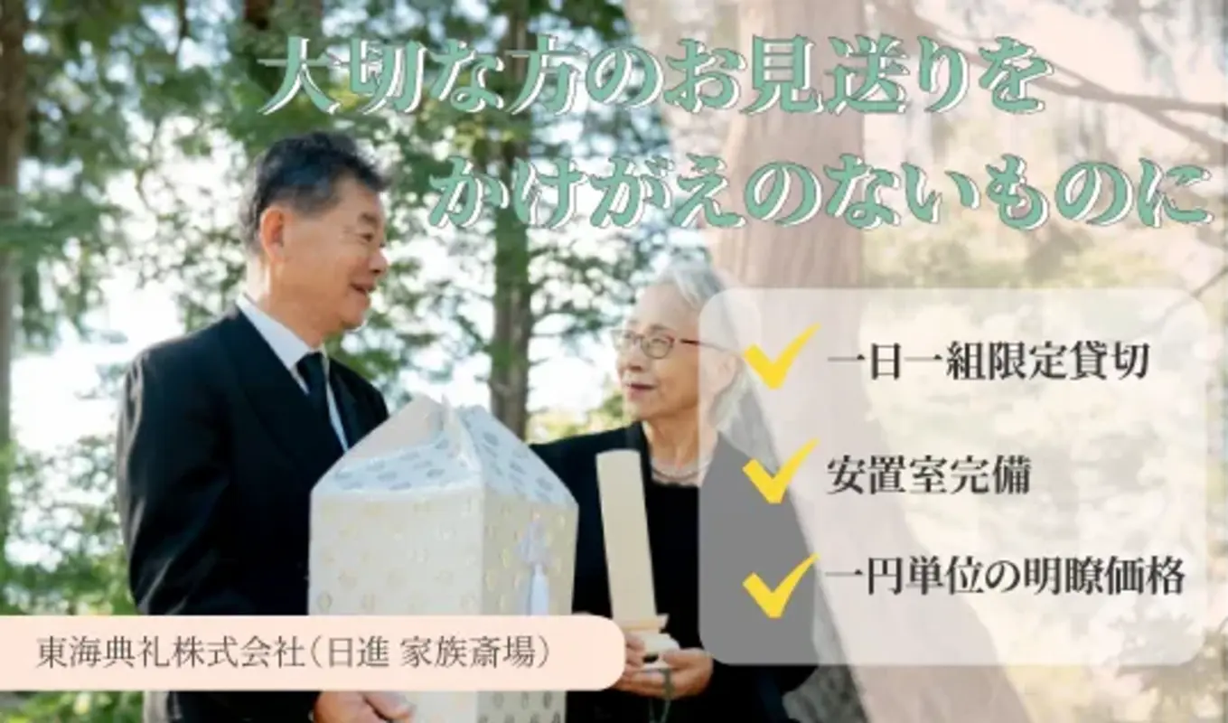 「東海典礼株式会社(日進 家族斎場)」は、日進市に密着した葬儀社です。人それぞれ、葬儀の形は異なります。「東海典礼株式会社(日進 家族斎場)」はあなたに合わせた葬儀をご提案いたします。「大切な人の葬儀を絶対に失敗したくない」そんな方はぜひ「東海典礼株式会社(日進 家族斎場)」へご連絡ください。