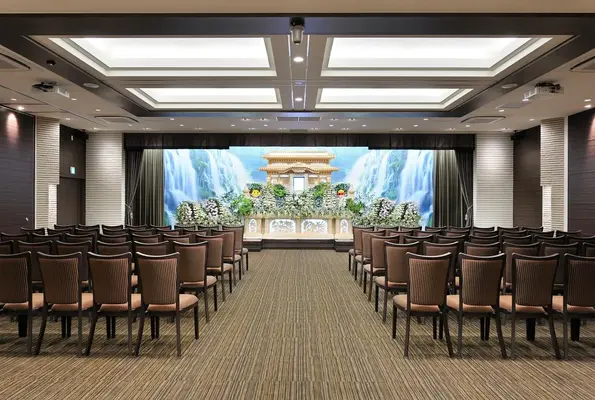 JR千葉駅北口より徒歩1分の好立地。電車でお越しの方に大変ご好評を頂いております。約40台分の駐車場を完備。 駅徒歩1分の好立地にありながら、閑静な住宅街の入り口にあり、緑豊かな樹木に囲まれた当ホール。落ち着いた明るい雰囲気の中、大切な故人様との最後のひとときをお過ごしいただけます。 斎場は2階と3階に2斎場。一般葬はもちろん、家族葬から大型葬儀まで、ご遺族様のご要望にお応えできる斎場です。