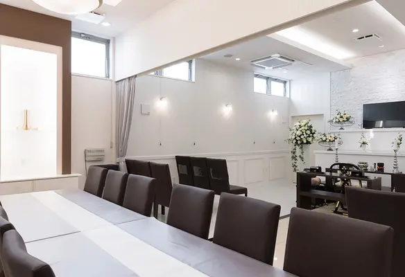 「家族葬式場 小さな森の家 千葉稲毛長沼町」は、一日一組限定の貸切りでご利用いただけます。25名程収容できる式場は、家族葬にピッタリ。完全プライベートな空間で、最後の時間をお過ごしください。