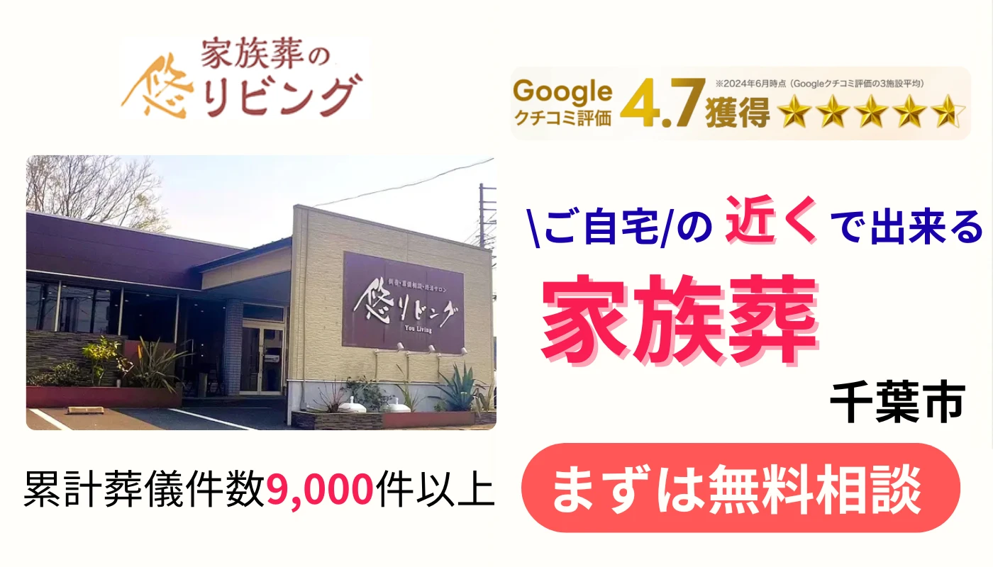 千葉市若葉区で家族葬の実績が豊富な葬儀社にはセレモニー和想(税込165,000円〜)、悠リビング大宮 柏斎苑(税込173,800円〜)などがあります。口コミや費用、葬儀事例などを参考にして選びましょう。
