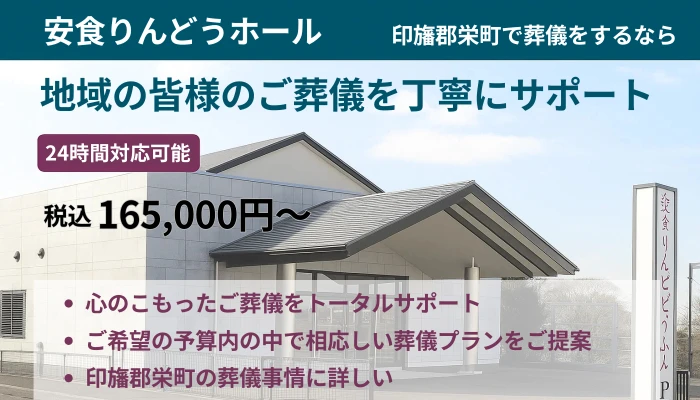 自分が住んでいる地域、親が住んでいる地域の葬儀事情をしっかり分かっている人は多くありません。だからその地域の葬儀事情に詳しい葬儀社に頼むのが安心です。安食りんどうホールは長年、印旛郡栄町の方の葬儀をお手伝いしてきました。印旛郡栄町の葬儀事情や、周辺の斎場のことを知りつくしているので、なんでもお聞きください。