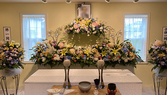 式の当日、私が希望しましたとおりの、西欧風にあしらわれた色とりどりの花祭壇の中央でほほえむ、母の遺影を目にしたとき、精一杯のことをしてやれたという満足感が、母を見送る悲しみに勝るのをおぼえました。