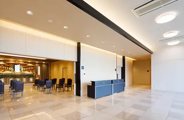 大原ホールは、いすみ市大原にあります。JR線「大原」駅から歩いて行けるので便利です。また、面会可能な安置施設を完備し、駅から近いので会いたい時にすぐに会いに行けるのも魅力の一つ。夜は宿泊も可能で、大切な方と少しでも長くいたい方にオススメです。