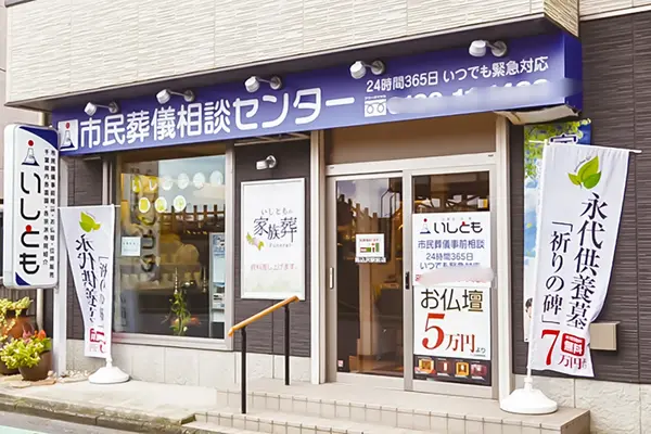 いしとも(馬込沢駅前店)に葬儀のご依頼をしたい方は、050-5231-1674までお電話ください。24時間365日、夜間や休日問わずいつでも繋がります。