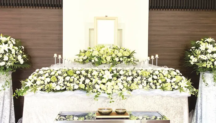 715,000円〜通夜、告別式を行い、家族や親族を中心として故人を見送るプランです。祭壇生花のポイントカラーが選べます。たくさんのお花に囲まれたお別れを希望の方にお勧めです。