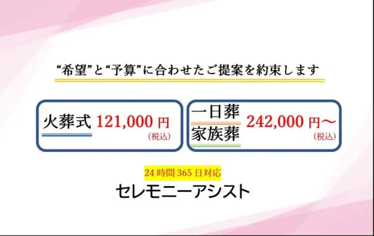 セレモニーアシストは、ご家族の希望を最大限に汲み取り、負担を抑えた葬儀をご提案いたします。お迎えはもちろん、ご不明点などがあればすぐ駆けつけます。遠慮なくご連絡ください。