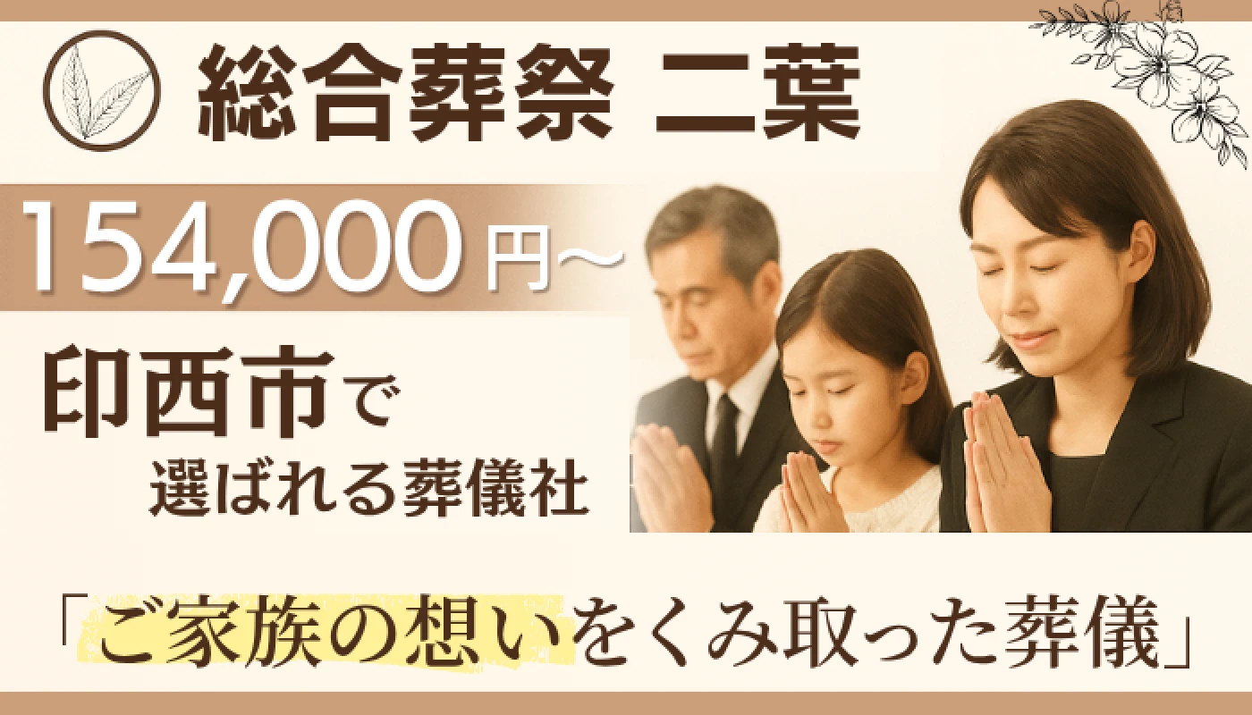 総合葬祭 二葉は、千葉県印西市にある夫婦経営の葬儀社です。家族との対話を大事にし、想いをくみ取った葬儀を行ってくれると評判。わからなことや不安なこと、二人に何でも話してみてください。予算も含めて柔軟に対応してくれます。