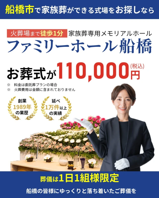 千葉県船橋市の「ファミリーホール船橋」では、事前にすべての費用を明示した明朗な見積もりをご提示し、ご家族が安心して準備を進められるよう努めています。365日24時間体制でご相談・ご搬送に対応しており、深夜や早朝でもスムーズなご対応が可能です。地域密着型の葬儀社として、ご家族との距離感を大切にしながら、必要なときに必要な支援をお届けします。