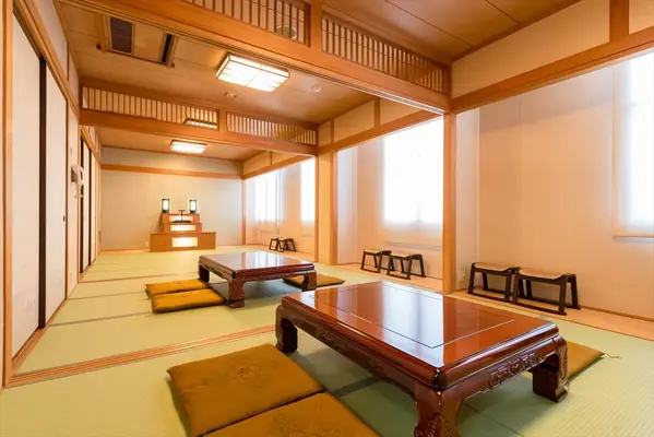 ドリーマー今治葬祭の自社式場「ドリーマー今治吹揚葬祭館」は、家族葬から一般葬まで対応可能。宿泊することもできるので、最後のお別れまで故人から離れることなく過ごせます。