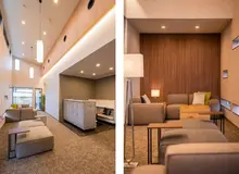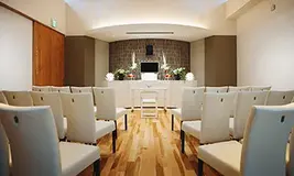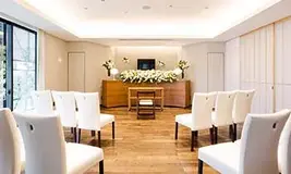 外観の市松模様は、その柄が途切れることなく続いていくことから永遠の意味も持つと言われています。式場と控室が一体となった異なるデザインの式場を2つご用意しています。Terre:ウオールナット色の落ち着いたフローリングの式場です。大きな窓からは庭園が望め明るい中にもシックな空間となっています。Ciel:白を基調の明るい空間です、大きな窓からは光が差し込み開けた窓がご遺族の心を癒します。