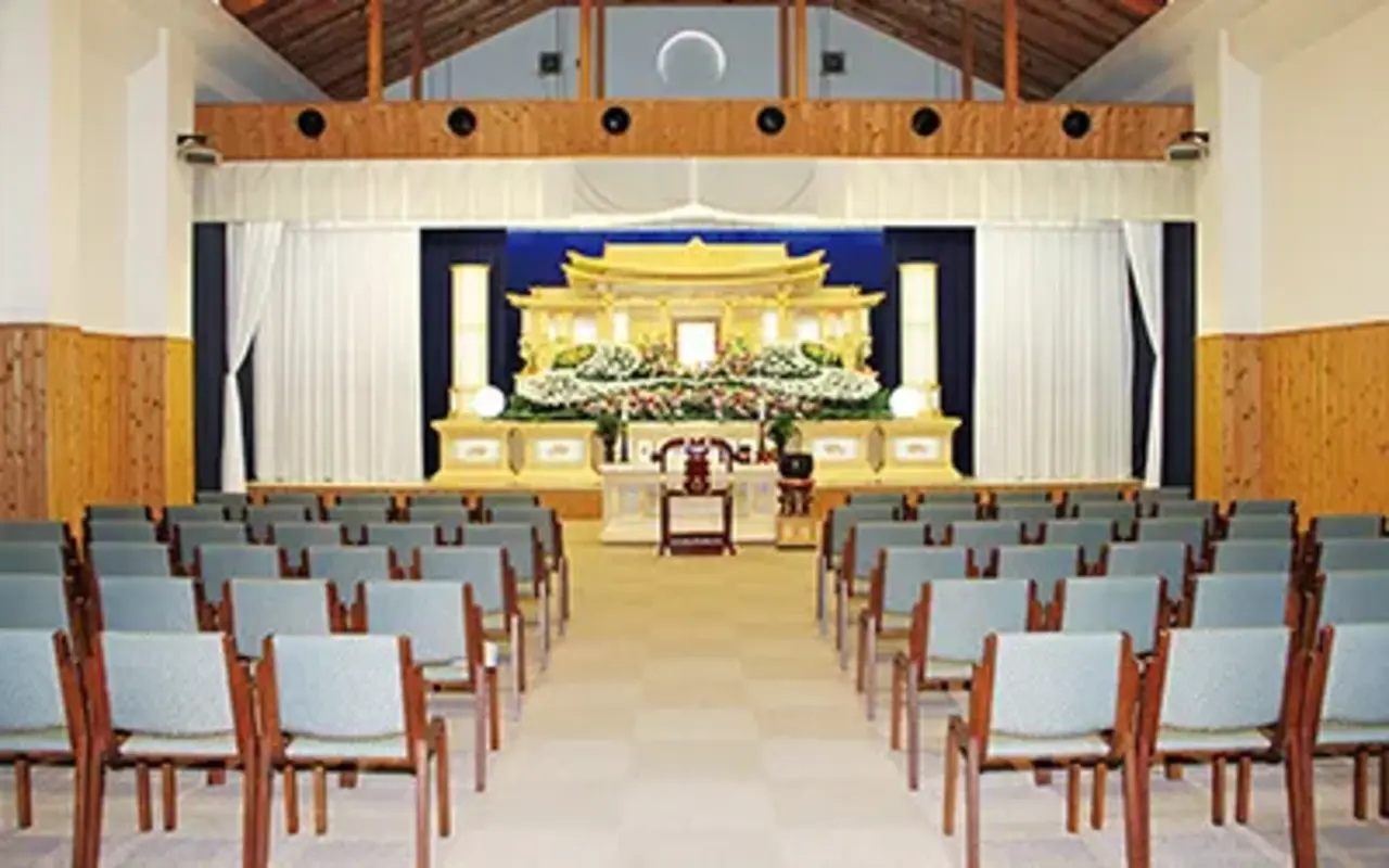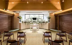 月心会館(空港通り)は松山市に密着した葬儀社です。24時間365日、お迎えも事前相談にも対応しています。木材をふんだんに使用したあたたかみのある空間は、家族葬にぴったり。松山市で葬儀をご検討中の方はぜひ一度ご相談ください。