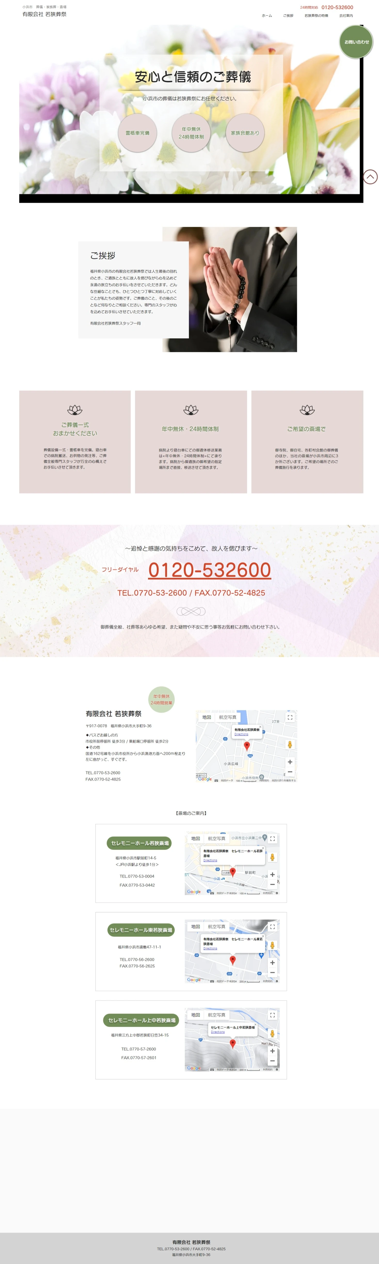 若狭葬祭は小浜市に密着した葬儀社です。24時間365日、お迎えも事前相談にも対応しています。