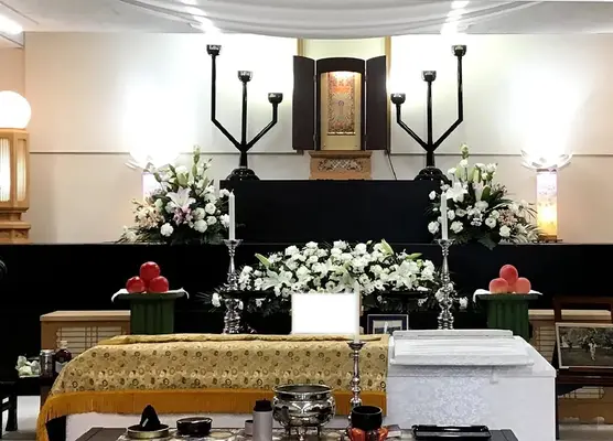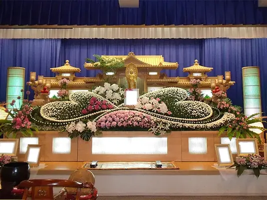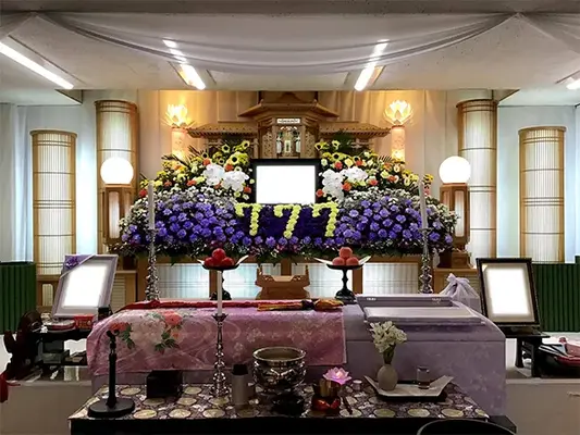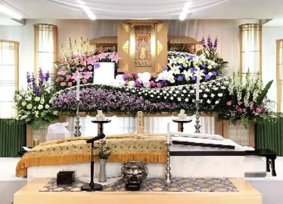 429,000円〜通夜は行わず、一日で葬儀・告別式を行う少人数プランです。 他社と比べてもよりたくさんの生花で故人様をお送りすることができます。 また、祭壇の花は全て棺に収めることができます。 ※1泊22,000円(税込)でご宿泊いただけます。 ※ドライアイス・安置料は亡くなった時間によって料金が変動します。 ※霊柩車・寝台車の料金は距離によって異なります。 ※人数が大幅に超過する場合、スタッフの増員が必要となり、それに伴う別途費用が発生いたします。