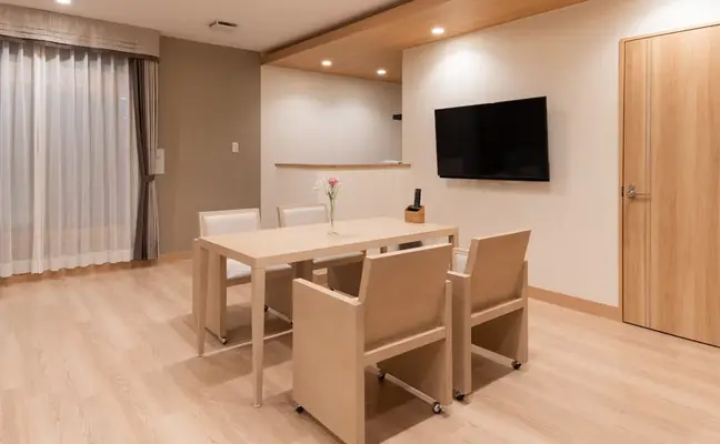 緑の囲まれた安らぎの空間での一日一組のお葬式を貸し切りで行えます。会場最大60名収容、会食人数最大30名、駐車場台数20台の会場で親しい方々でゆっくりとお別れして頂く家族葬や少人数の葬儀に最適な会場です。遺族親族の控室を完備しベットルームでの休憩スペースがあります。バリアフリー構造です。法事法要にも利用できます。