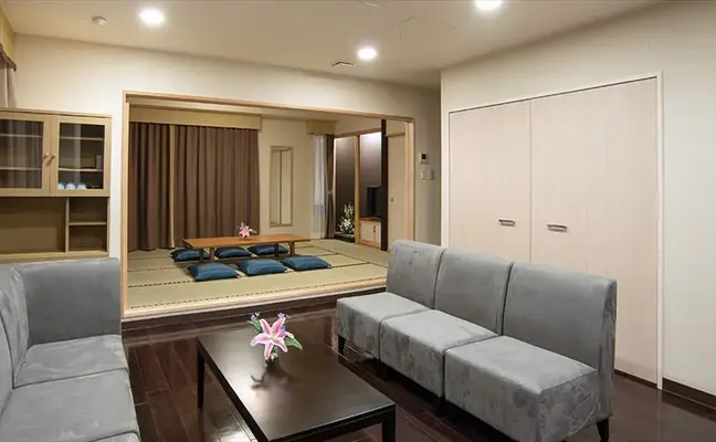 浴室付きのお部屋で仮眠もおとりいただけます。 遠方からお越しのご親族にも便利です。