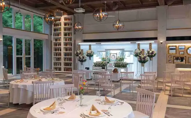 白河エリア初の家族葬専用ホール。緑に囲まれた森の中の洋館にて、会館の全てを使って、家族だけで静かに葬儀を執り行なう葬祭式場。ご家族の故人を偲ぶあらゆるご要望にお応えします。オープンキッチンを併設した式場で料理を提供しており、ご家族、親しい方々でゆっくりとご会食いただけます。ご法事にも最適です。