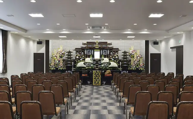 田村市船引町中心に位置している斎場です。家族葬から一般葬、大規模葬まで対応することが出来ます。バリアフリー設計で、家族葬から大型葬まで対応でき、式場、お清め室がワンフロアにございますので、一つのご葬家様が貸切で式場をお使いいただけます。そのため、ゆったりとした時間の中で、葬儀までの時間をお過ごしいただけ、故人様をお送りできる式場です。