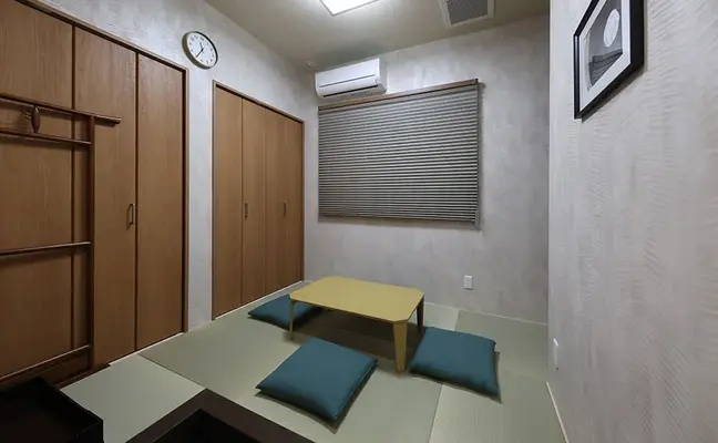 浴室付きのお部屋で仮眠もおとりいただけます。 遠方からお越しのご親族にも便利です。