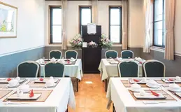 場所が分かりやすく、重厚感ある建物です。 控室が広く落ち着いた空間で、地域に互助会員様が多く信頼をいただいております。 もちろん非会員様もご利用頂けます。