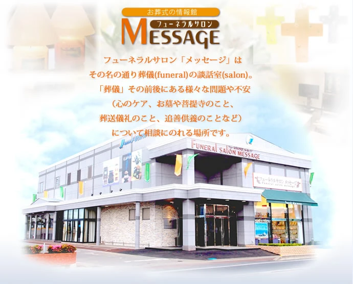 フューネラルサロンメッセージは、各宗教・宗派の「火葬式・一日葬・家族葬・一般葬」などの葬儀に対応できるみどり市の葬儀社です。