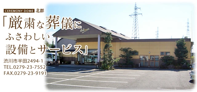 セレモニードーム渋川は、各宗教・宗派の「火葬式・一日葬・家族葬・一般葬」などの葬儀に対応できる渋川市の葬儀社です。