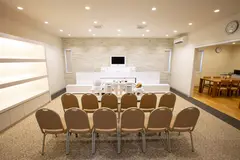コンパクトな式場で少人数の家族葬に最適な式場です。1日1組のご家族様で貸切なので、他家に気にせずゆっくりとしたご葬儀・家族葬・火葬式・直葬・一日葬・密葬・友人葬が可能で、仏式、神式、キリスト教、天理教、無宗教などの宗派に対応しております。