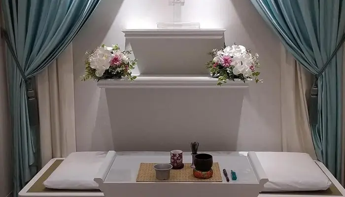 家族葬の広仏は、広島市佐伯区八幡東に一日一組限定で利用できる自社式場「広島五日市会館」を運営しております。周りを気にしなくていいので、花入れに時間をかけたり、久しぶりに集まった親戚との記念撮影をしたりと大切な故人との最後の時間をゆっくりとお過ごしください。