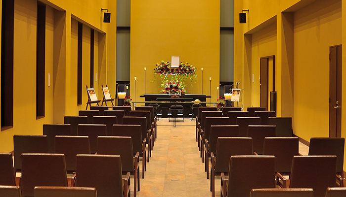 暖かい光に包まれる ステンドグラスが印象的な斎場