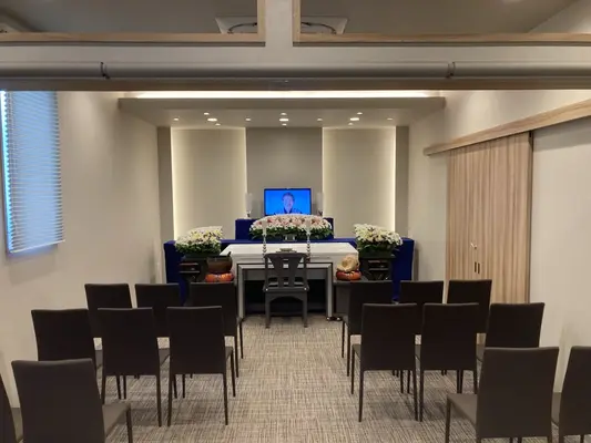 小さなお葬式 月寒東ホールは、少人数でのお葬式に特化した家族葬専用の式場です。一般的な大きな斎場ではなく、ご家族やごく親しい方々だけで、ゆっくりと故人様との時間を過ごしていただけるこじんまりとした空間となっております。アットホームな雰囲気の中で、心温まるお別れができるよう、丁寧にお手伝いさせていただきます。