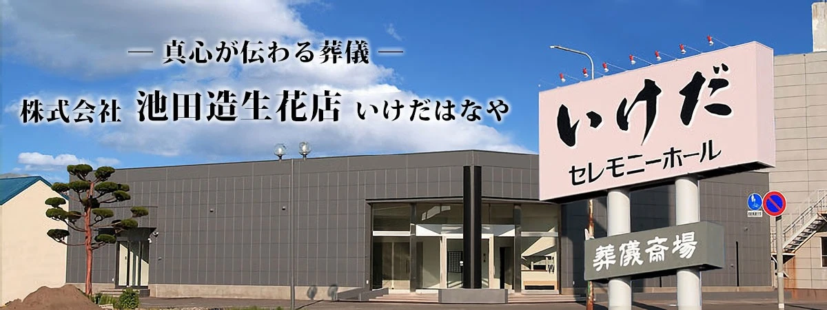 池田造生花店/いけだセレモニーホールは、各宗教・宗派の「火葬式・一日葬・家族葬・一般葬」などの葬儀に対応できる滝川市の葬儀社です。