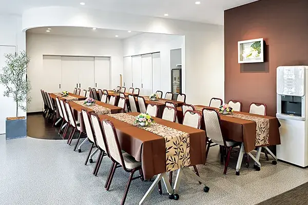 タルイ会館北大久保はJR山陽本線「大久保」駅から神姫バスで「天郷」バス停下車、徒歩約5分に位置しております。「家族葬専用」に設計された会館は、少人数でおこなう葬儀に最適な大きさ。もしものときに、病院・施設などから24時間、直接ご入館しご安置ができ、一日ひと組貸切りのゆったりとした空間の中で、皆さまのご希望どおりの葬儀を執り行うことが可能です。また、法事・法要で、ご利用いただける設備も充実しております。