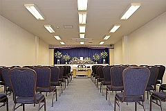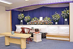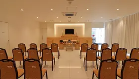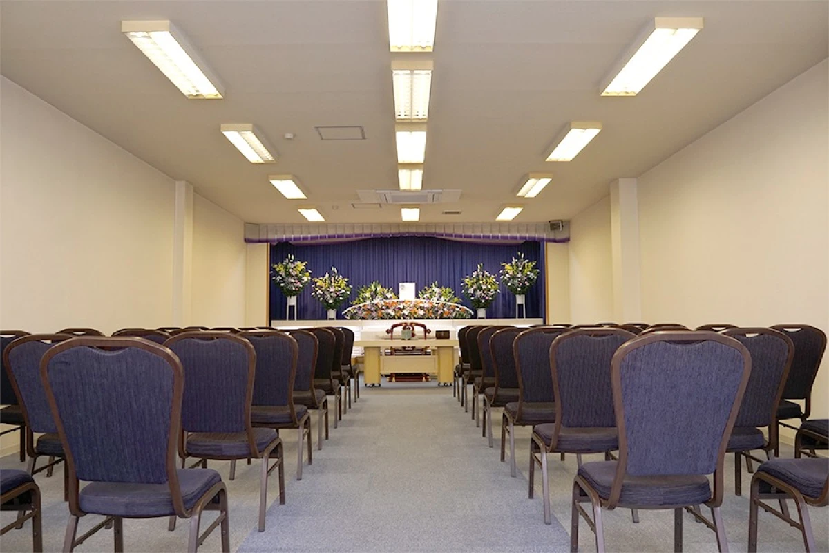 式場の収容人数は最大50名様ほどで、一般参列の方も収容させて頂ける多用途な式場になっております。 もちろん仏式、神式、キリスト教、無宗派の自由葬も対応。 参列の方が宿泊できる控室フロアや、「湯灌の儀」を執り行う空間も併設しております。