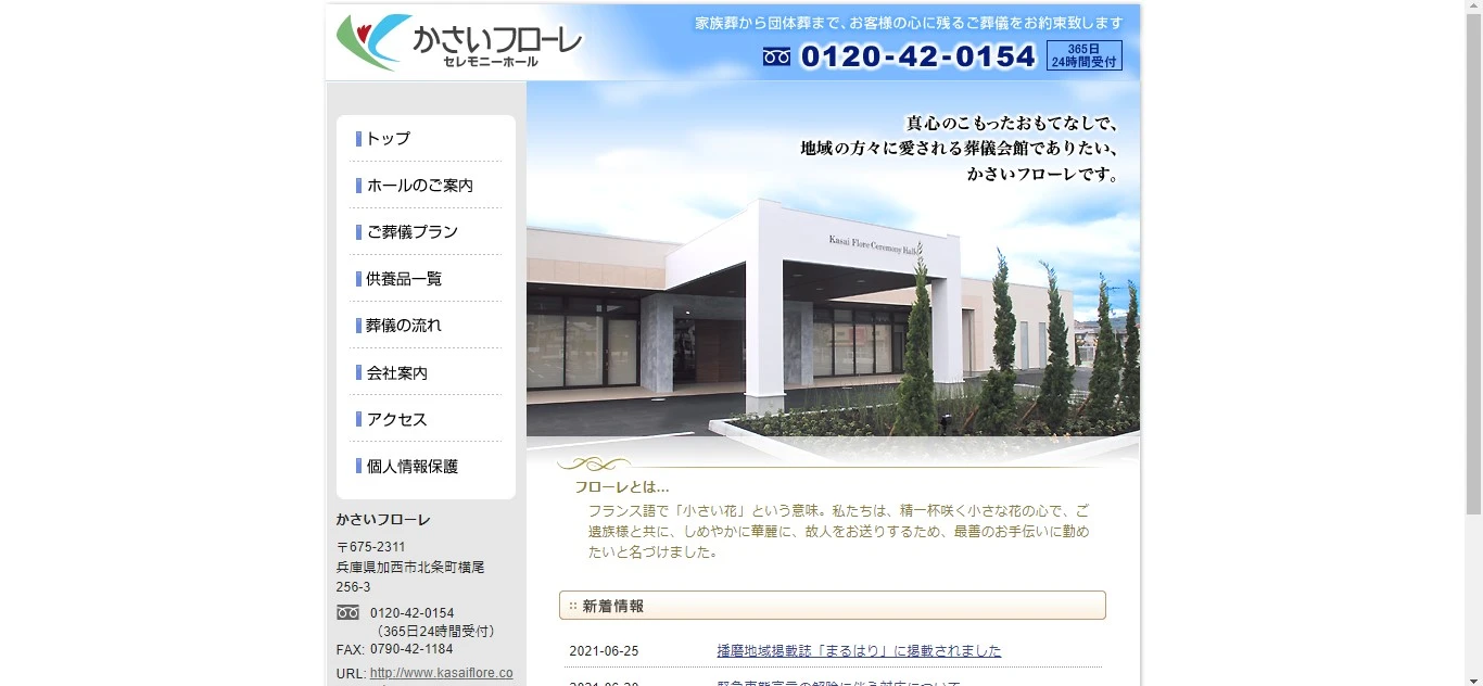 かさいフローレは加西市に密着した葬儀社です。24時間365日、お迎えも事前相談にも対応しています。