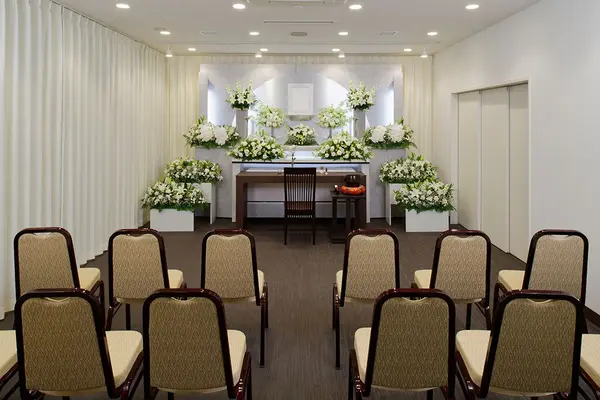 椅子席は最大40席ですが、実際には20席程度が適切です。お寺様がいらっしゃる場合や、棺の周りにスペースを確保する必要があるためです。