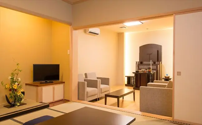 浴室付きのお部屋で仮眠もおとりいただけます。 遠方からお越しのご親族にも便利です。ご安置も可能です。