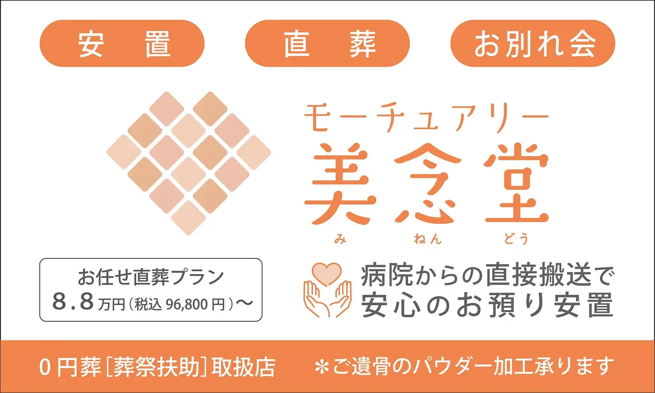 モーチュアリー美念堂は、近年増加した一家族様のみの小規模な火葬式やお別れ葬に特化したアステルの葬儀ブランドです。 大切な方のご安置からご葬儀まで安心しておまかせいただけます。 24時間365日つながるお電話に、いつでもお問い合わせください。事前相談や内見も承ります。