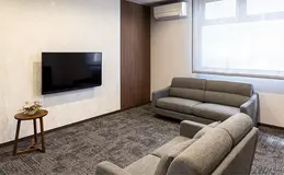 ワンフロアーで使用しやすい式場になっております。ベッドルームやお風呂も完備しております。モダンで落ち着いた部屋で故人様とゆっくりとお過ごしできる家族葬の式場です。