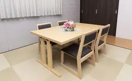 ワンフロアで使いやすい式場を完備しており、ベッドルームやお風呂もご利用いただけます。モダンで落ち着いた雰囲気の中、故人様とゆっくりと過ごせる家族葬に最適な空間です。大切な時間を心安らぐ環境でお過ごしいただけるよう、配慮された設計となっています。ご家族の絆を深める特別なひとときを、心を込めてお手伝いします。