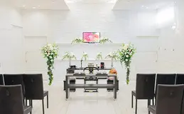 家族葬専用の葬儀会館です。施設の充実、ゆっくりとお別れが出来ます。祭壇は全て生花祭壇になります。葬儀、法事にも対応可能な式場です。