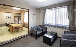 浴室付きのお部屋で仮眠もおとりいただけます。 遠方からお越しのご親族にも便利です。