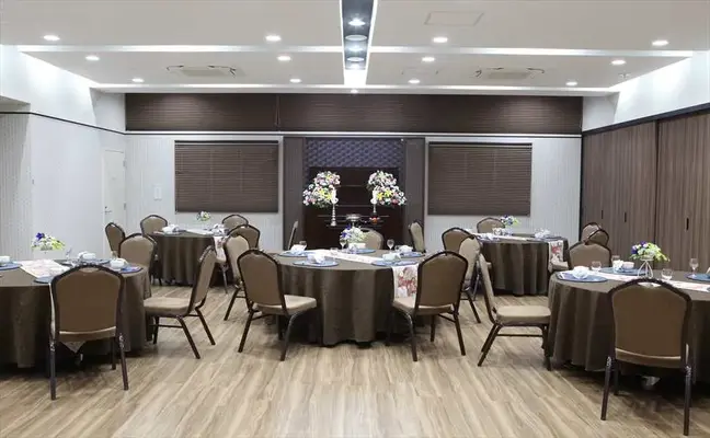 式場の他に、家族葬ホールを完備。会食室には、出来立てを提供できるキッチンがあります。