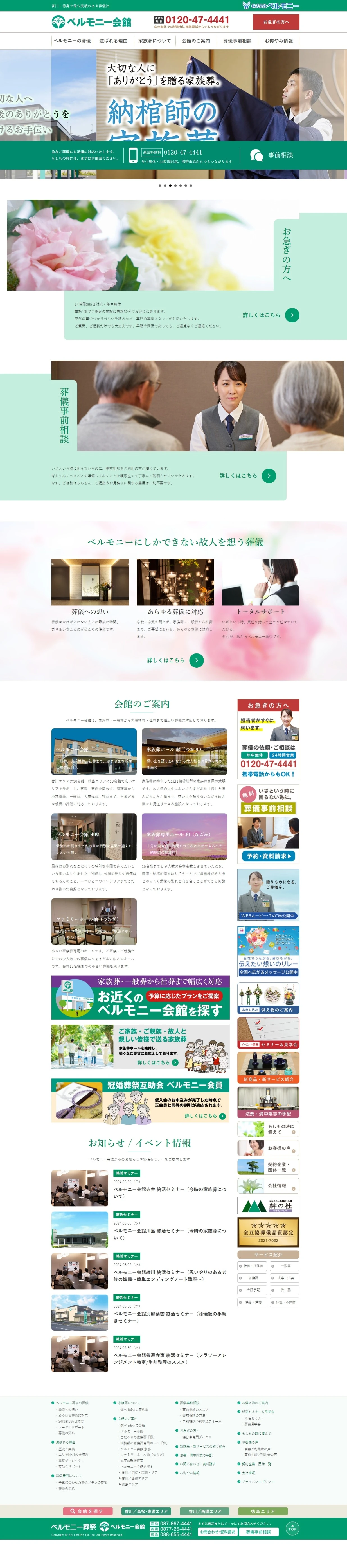 ベルモニー葬祭は丸亀市に密着した葬儀社です。24時間365日、お迎えも事前相談にも対応しています。