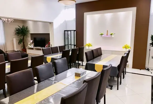 家族葬のカナクラの自社式場「木太町ホール」は、一日一組限定の貸切りでご利用いただけます。30名程収容できる式場は家族葬にピッタリ。完全プライベートな空間で、故人との最後のひと時をお過ごしください。