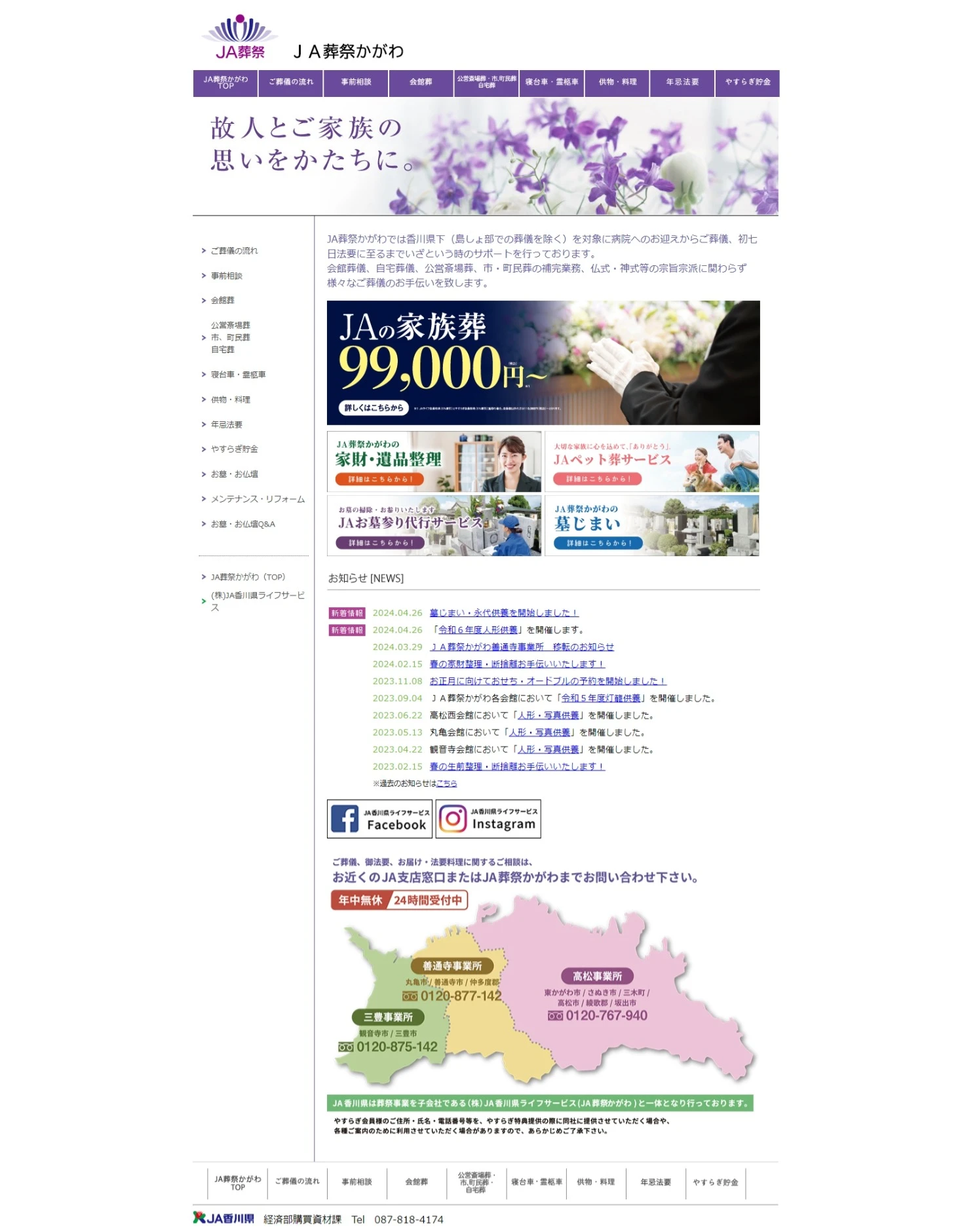 JA香川県/善通寺事業所は善通寺市に密着した葬儀社です。24時間365日、お迎えも事前相談にも対応しています。