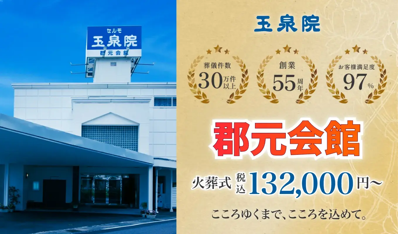 玉泉院 郡元会館は鹿児島市唐湊、「鹿児島中央」駅からタクシー5分の場所にある葬儀場です。 故人とのお別れを単なる式にするのではなく、愛情に包まれた故人様らしいお別れの場としてプロデュースいたします。たくさんの思い出の中から素敵な写真を選んで、似合うお花を飾って、故人様のことを思って食で安らぎ、一生懸命お手伝いする。それが私たち玉泉院が大切にしていること。お葬式は大切な人にできる「最後のおくりもの」だと考えております。