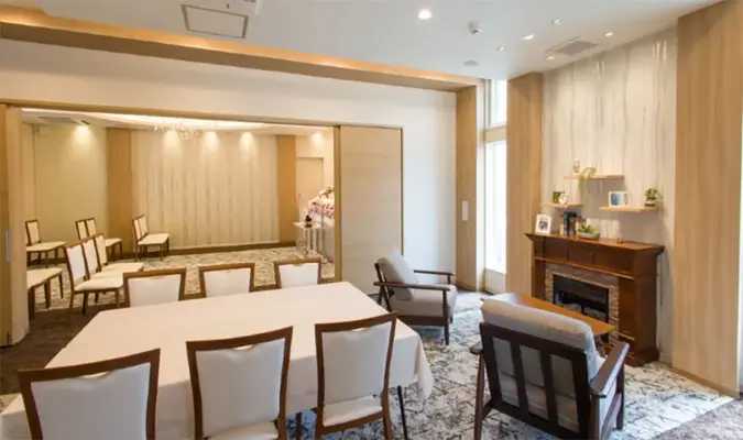 式場、控室、サブホールが一体化しており、アットホームな雰囲気で、亡き大切な方を偲ぶ、ゆっくりとした温かいお別れの時間が過ごせます。