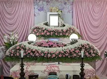 小さい遺影写真の額縁は5,500円、顔周りの花飾りは33,000円です。合計で約4万円の追加費用となります。